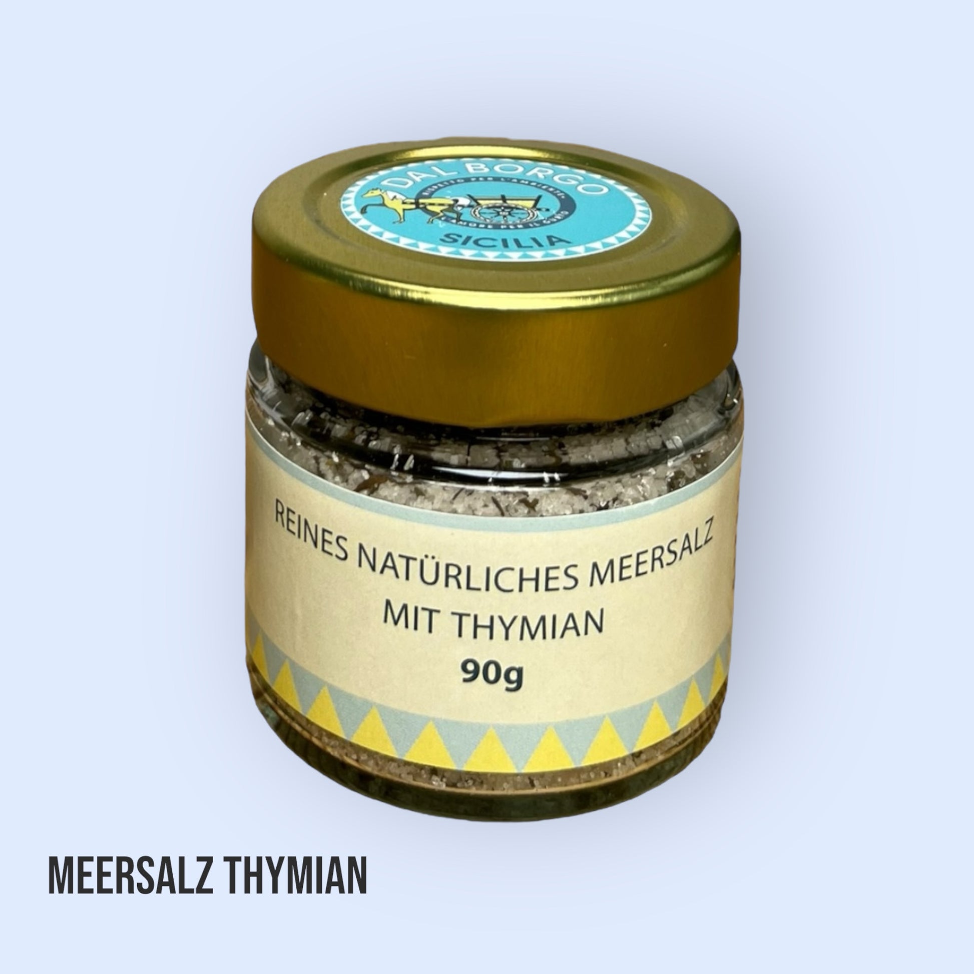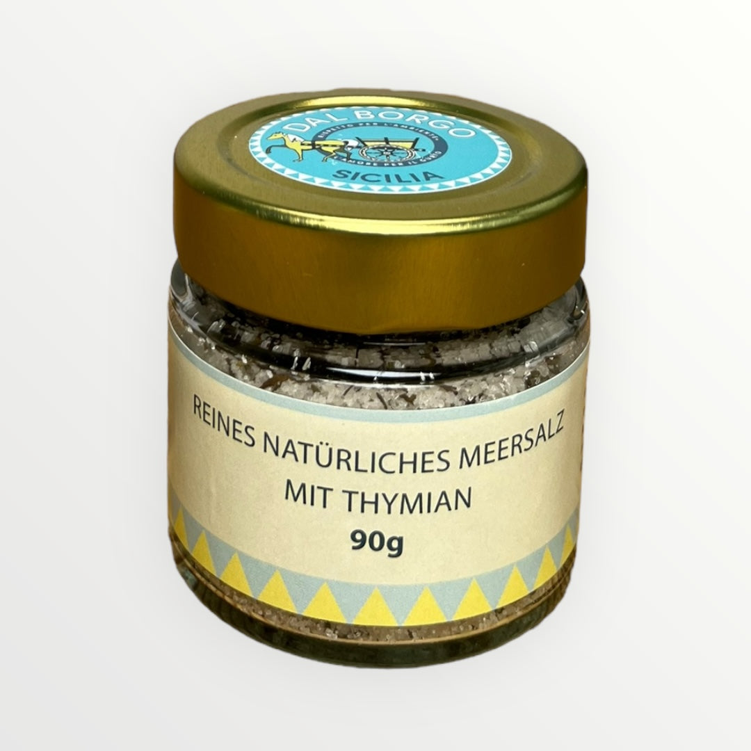- 90 g Salz aus den Salinen von Marsala (TP), aromatisiert mit Thymian