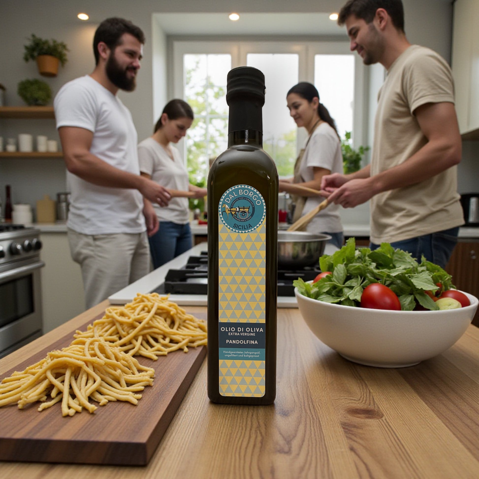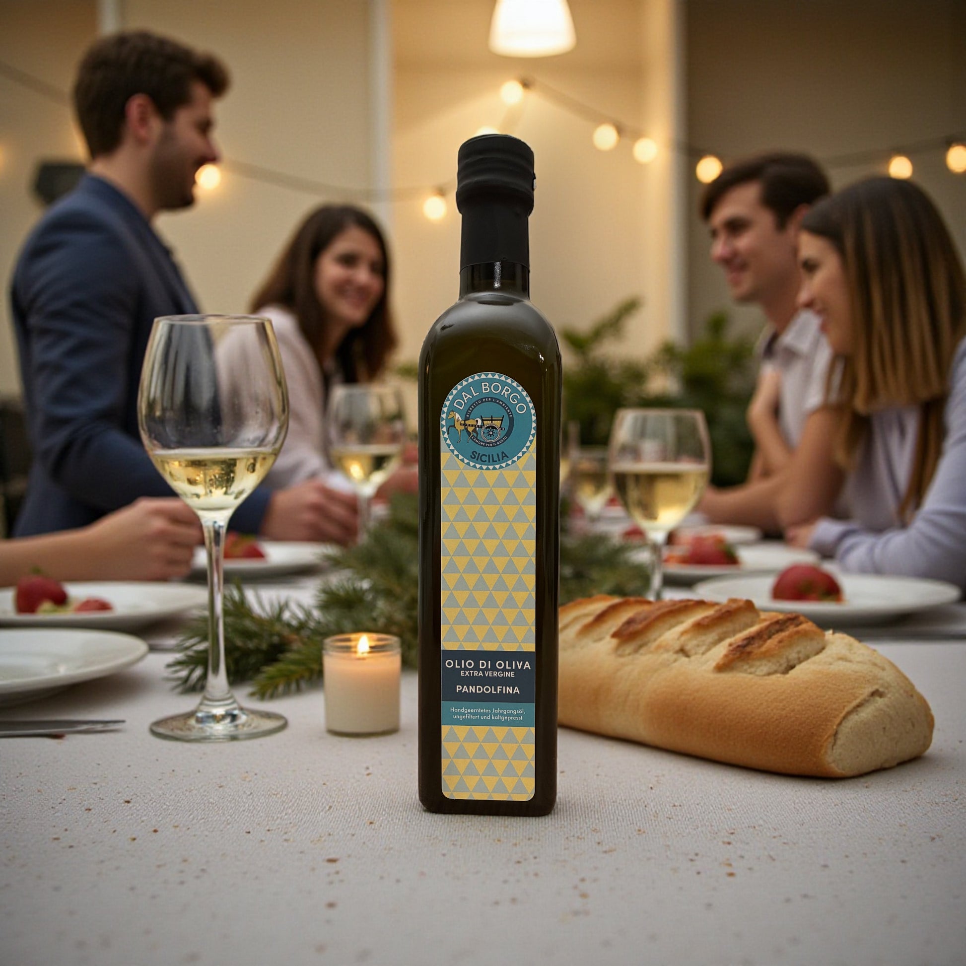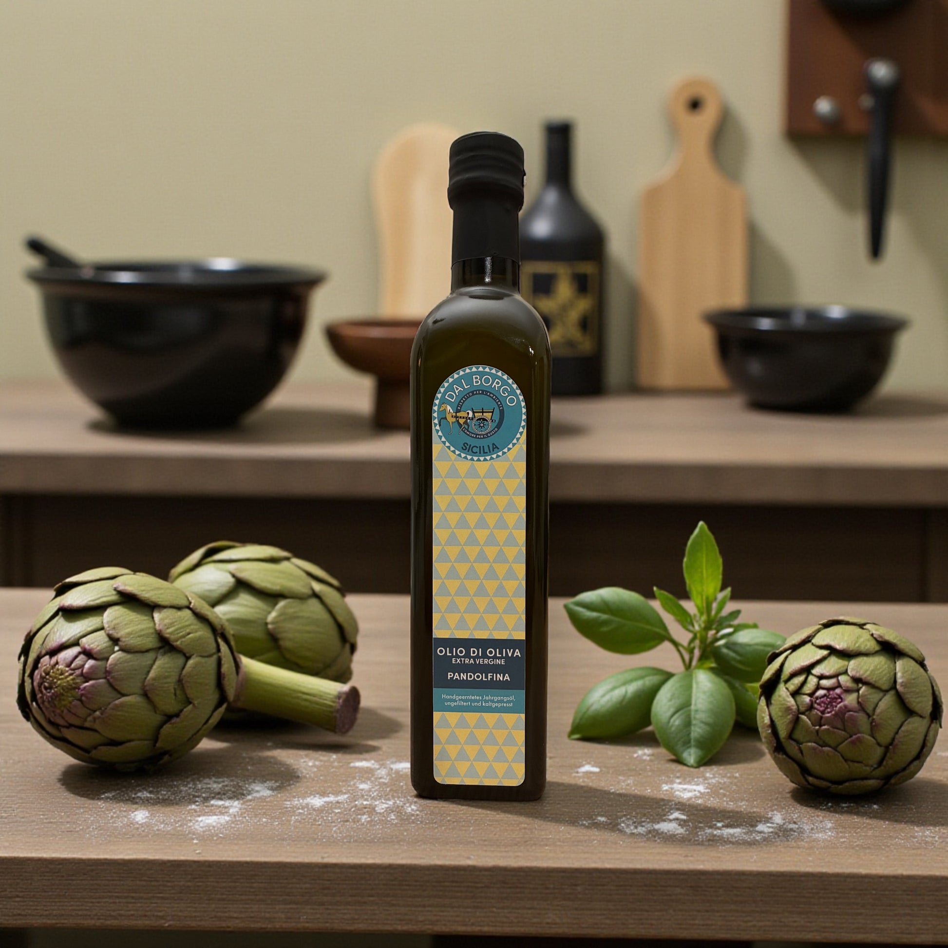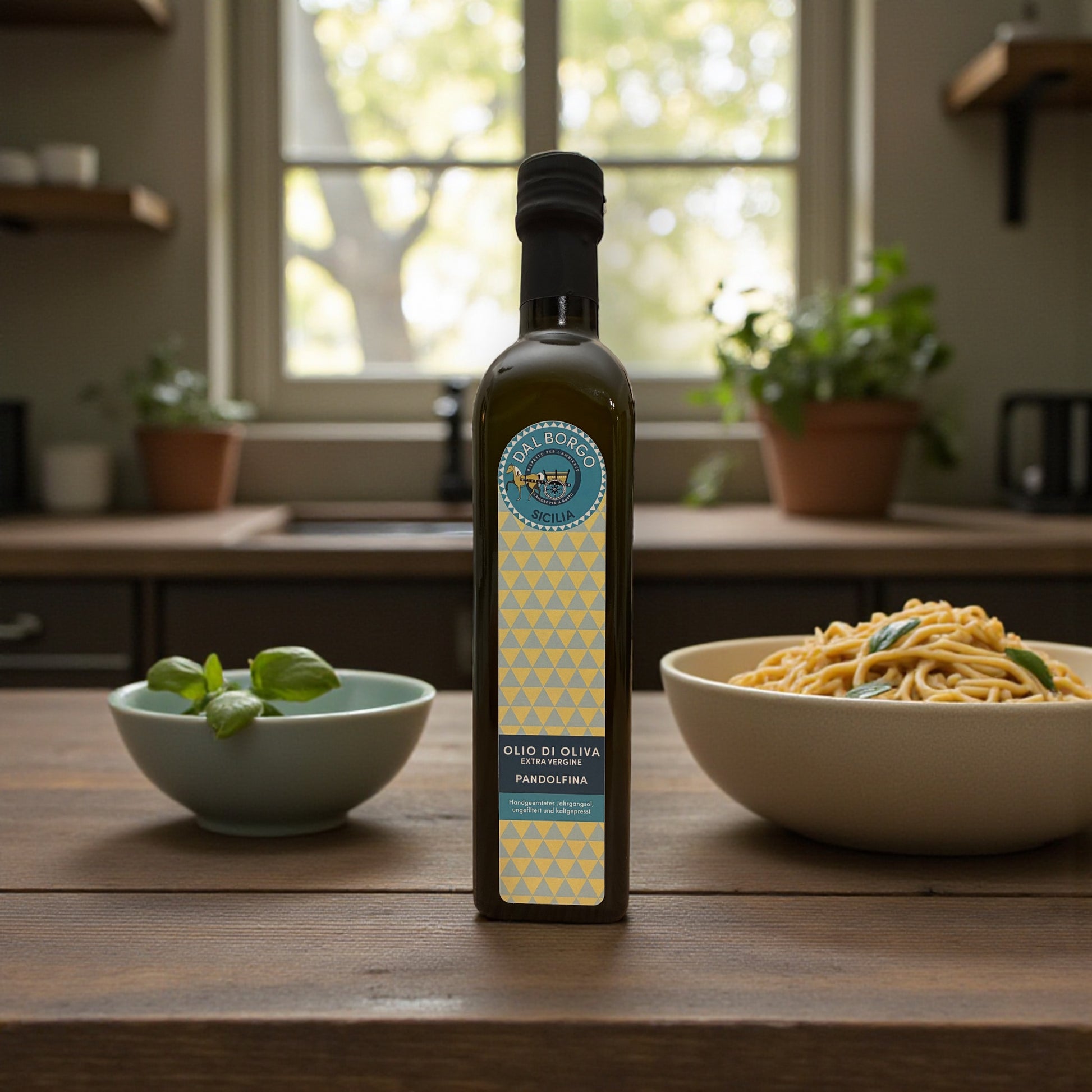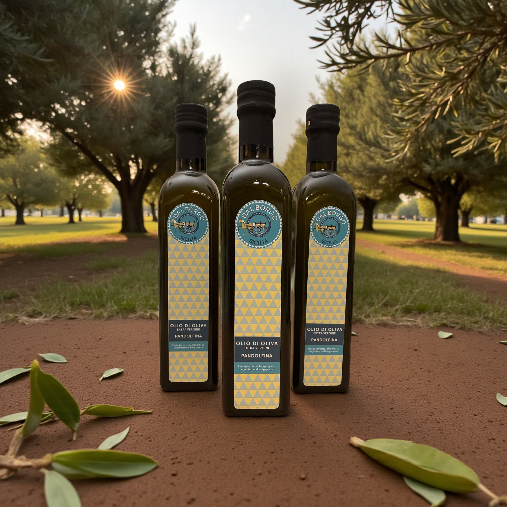 Unser hochwertiges Olivenöl Extra Vergine stammt aus Sizilien und wird aus den traditionellen Sorten Nocellara del Belice und Biancolilla gewonnen. Im Olivenhain Pandolfina in Sambuca di Sicilia nach Bio-Standards angebaut und geerntet, entsteht ein naturbelassenes Olivenöl mit ausgezeichnetem Charakter.