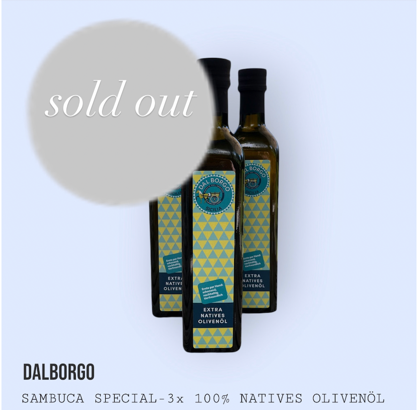 Unser sanftes sizilianisches Olivenöl aus den Sorten Nocellara del Belice und Biancolilla im günstigen 3-er Pack. Dieses Öl aus dem Olivenhain in Sambuca die Sicilia ist nach Bio-Standards angebaut und geerntet, der Olivenhain ist aber noch nicht zertifiziert. Nach der Beantragung der Zertifizierung bei den Behörden werden innerhalb von 2-3 Jahren immer wieder Proben vom Boden und den Oliven genommen. Und erst nach diesen Überprüfungen erfolgt dann die offizielle Bio-Zertifizierung. Unser Olivenöl wird nicht gefiltert.